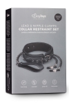 Conçu en cuir synthétique et métal, l'ensemble Collier + laisse + pinces à seins "Collar Restraint Set" de la marque Easytoys Fetish Collection présente un aspect luxueux.