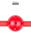 Un Bâillon en cuir synthétique de qualité avec une balle en PVC perforée rouge, destinée à faire taire votre soumis(e) tout en maintenant sa bouche grande ouverte.