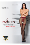 Fantaisie sensuelle, ces collants attirent le regard vers l'ouverture intime doublée de fil rouge qui dévoile largement la peau nue de l'entre-jambe.