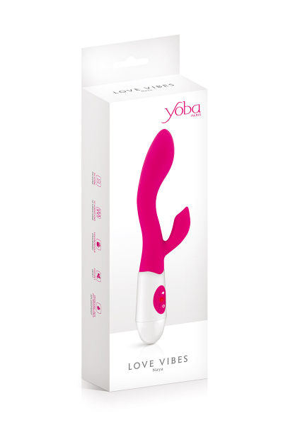 Le vibromasseur Rabbit Naya (coloris rose) de la marque Yoba est un sextoy de qualité dédié au plaisir féminin. Il stimule en même temps le vagin, tout particulièrement la zone du point G grâce à sa forme incurvée et sa tête élargie, et le clitoris grâce à son petit ergot stimulant judicieusement placé.
