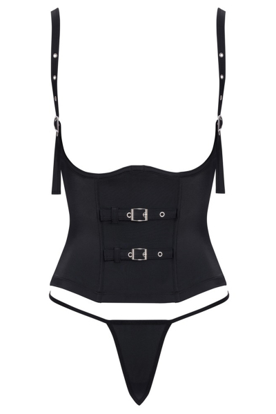 Le mini string assorti, inclus, vient compléter cet ensemble séduisant pour un look aussi chic que provocant.